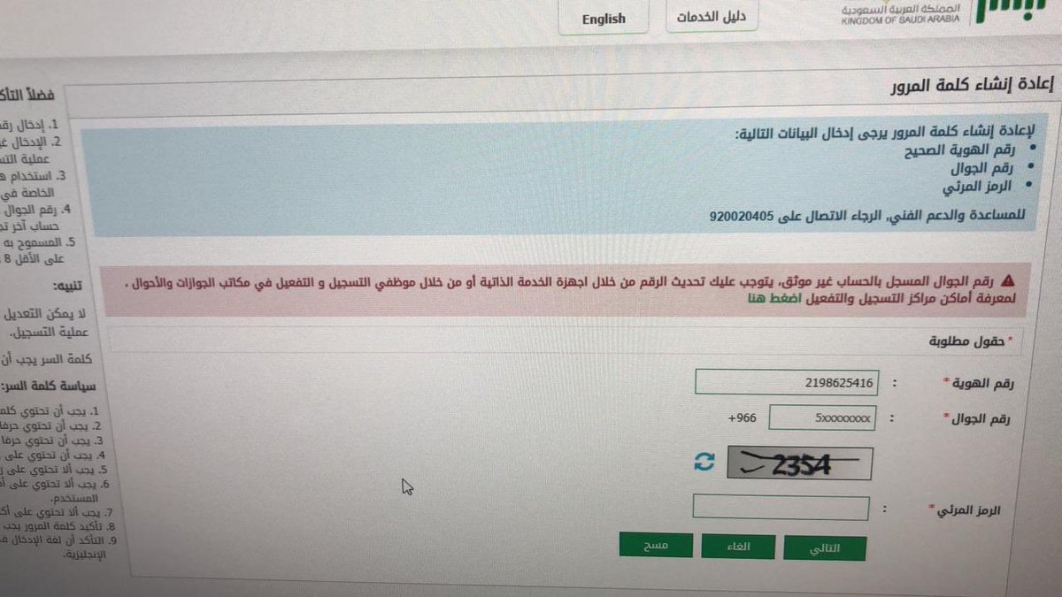 أبشر لا يمكن تحديث رقم الجوال المسجل بالمنصة من خارج المملكة نجران الآن